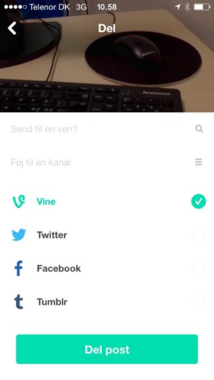 TIP: Når jeres Vine-video er oploadet til jeres kamerarulle, kan I eventuelt sende den til jeres lærers E-mailadresse eller oploade den til SkoleTube.